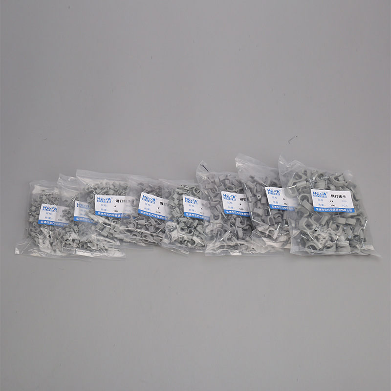 沖量款 塑料電纜網(wǎng)線線卡 鋼釘線卡圓型灰色 墻釘線釘電線卡扣